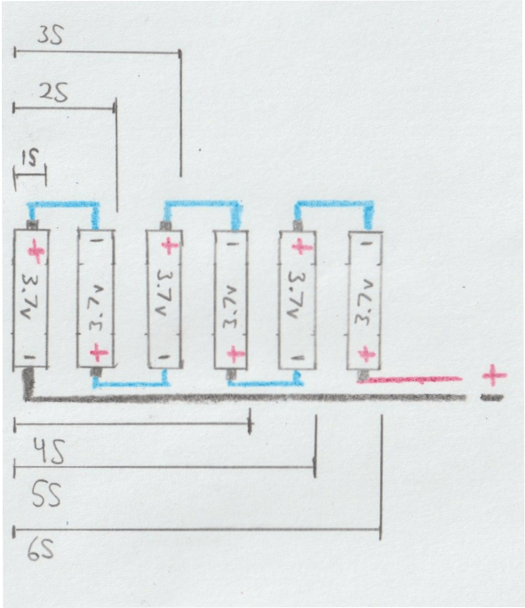 Technically, the “S” refers to how many 3.7-volt batteries are arranged in series (“S” is for “series”). A 6S battery is actually just six 3.7-volt batteries connected in series.